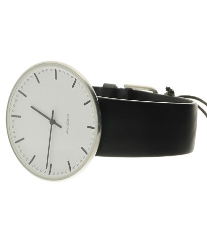 Automatisk, urkasse af stål 46 mm diameter, hvid skive med stregindex, hærdet glas, sort læderrem. Fabriksnyt, nypris 2895,- stammer fra ophør.
