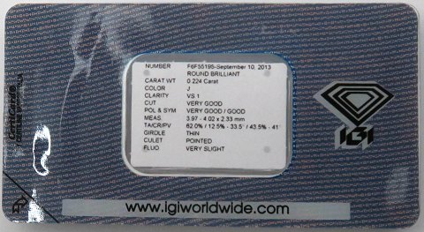 IGI Antwerpen, investeringsdiamant på 0,22 ct. Wesselton vs 1.