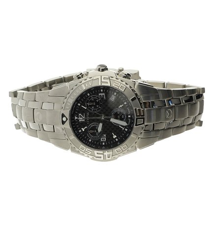 Chronograph, water resist 200 m, urkasse og ledlænke med foldelås af rustfrit stål, urkasse 41 mm diameter, sort skive med arabertal/stregindex, safirglas. Fabriksnyt, nypris 5499,- stammer fra ophør.