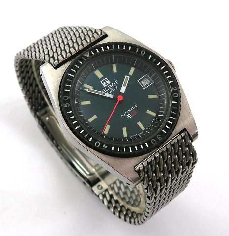 Tissot Automatic herrearmbåndsur, model PR-516 i urkasse og med lænke af stål. Indstillelig lynette. Mørkegrøn tonet skive med stregindikation, central sekundviser og datovisning i #3 position. Automatisk værk. Urkasse diameter 35 mm.