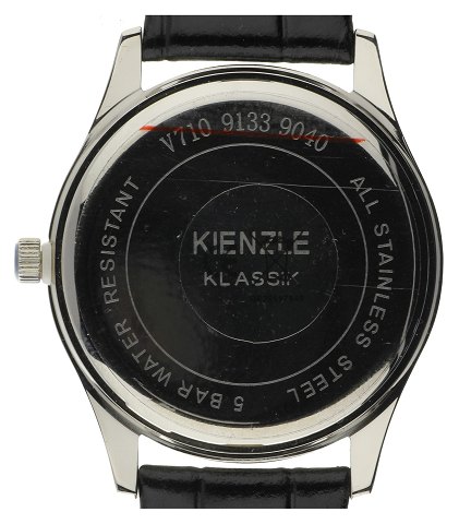 Quartz, water resistent, urkasse af rustfrit stål 40 mm diameter, sort skive med arabertal, safirglas, sort krokrodilleskindspræget læderrem. Fabriksnyt, nypris 749,- stammer fra ophør.