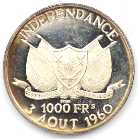 Niger, 1000 Francs, ND(1960), sølv, 20.00 gr., .900, KM# 6