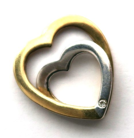 Hjertevedhæng af tofarvet 18 kt. guld med diamanter 0,02 ct.