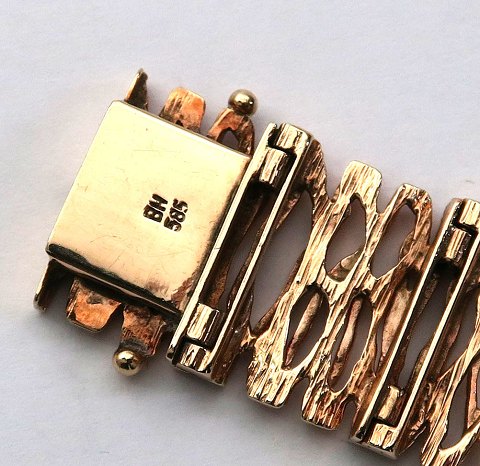 Bernhard Hertz Armlænke af 14 kt. guld, L. 18 cm., B. 18 mm., vægt ca. 43,5 gr.