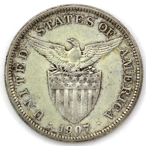 Filippinerne, 1 Peso, 1907 S, sølv, 20.00 gr., .800, KM# 172