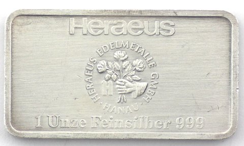 Heraeus, 1 ounce sølvbarre