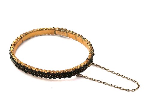 Armlænke af forgyldt metal, prydet med 2 rækker granater