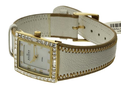 Quartz, water resistent, urkasse af rustfrit stål prydet med små zirkoner, 26 x 31 mm, marmormettalic skive med arabertal, sølvmetallic læderrem. Fabriksnyt, nypris 1198,- stammer fra ophør.