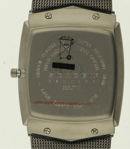 Quartz, water resistent, urkasse og rem af rustfrit stål, urkasse 35 x 40 mm, hvid skive med stregindex. Safirglas. Fabriksnyt, nypris 1198,- stammer fra ophør.