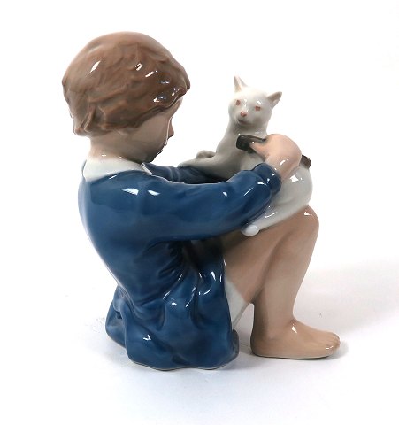 Kgl. figur i form af pige som strigler en kat. H. 15 cm., 1. sortering.