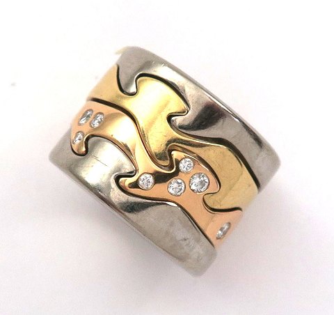 Georg Jensen, firedelt Fusion ring af 18 kt. guld og hvidguld, en bane prydet med 8 brillantslebne diamanter, tilsammen ca. 0,15 ct. Ring Str. 51, samlet vægt ca. 21 gr.