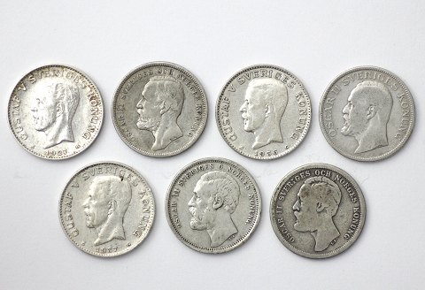 Sverige, 1 kr. sølv 1875, -81, 1904, -07, 1927, -36, -37. (7 )