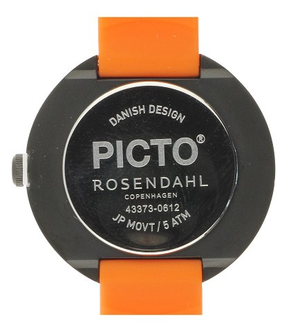 Picto, quartz, urkase af sort rustfrit stål 30 mm diameter, orange skive, orange silikonerem. Fabriksnyt, nypris 899,- stammer fra ophør.