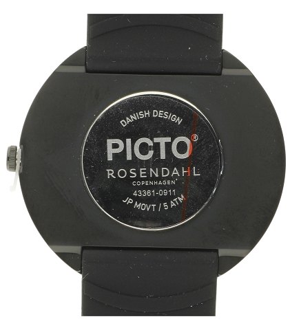 Picto, quartz, urkasse af sort rustfrit stål 40 mm diameter, sort skive, sort silikonerem. Fabriksnyt, nypris 999,- stammer fra ophør.