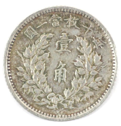 Kina, Republik, 10 Cents (1 Chiao), 3, sølv