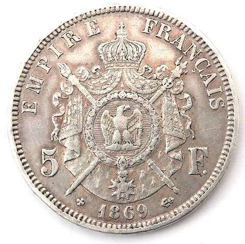 Frankrig, Napoleon III, 5 Franc sølv 1869 BB - KM 799.2