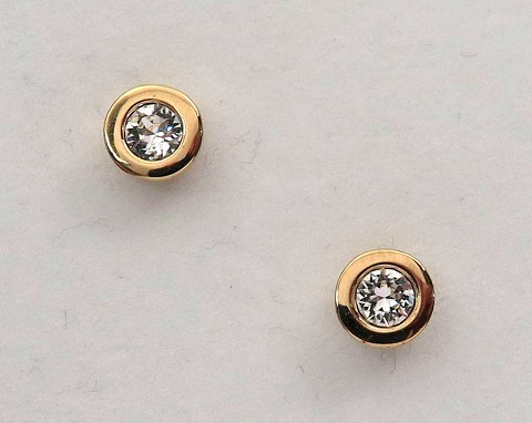 Swarovski, par ørestikker af gulddoublé, prydet med klare, facetslebne sten. Front diameter 7 mm.
