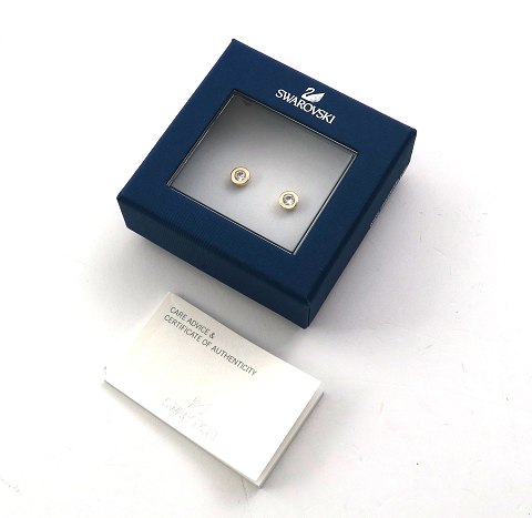 Swarovski, par ørestikker af gulddoublé, prydet med klare, facetslebne sten. Front diameter 7 mm.