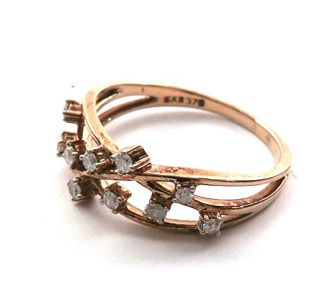 Ring af 9 kt. guld, prydet med 10 diamanter, tilsammen ca. 0,15 ct.