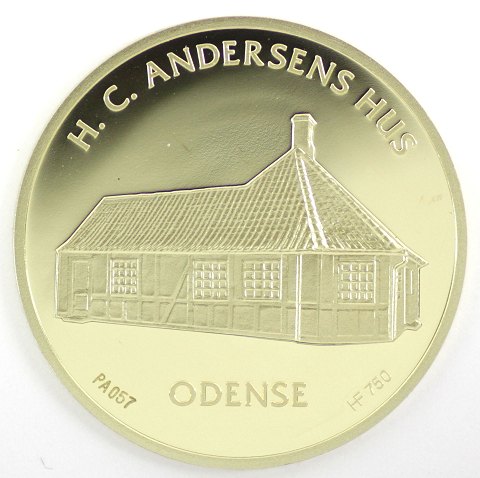 Medalje af 18 kt. guld, præget i anledning af H.C. Andersens 200 års fødselsdag den 2. april 2005 (1805-2005). Diameter 33,2 mm., vægt 17,5 gr. Kun præget i 500 eksemplarer