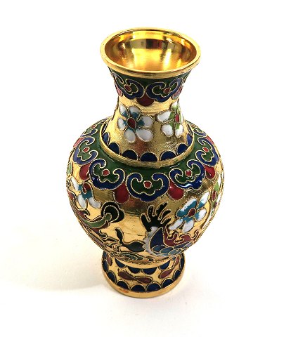 Vase af messingblik med cloisonné dekorationer. H. 15 cm., 21. årh.
