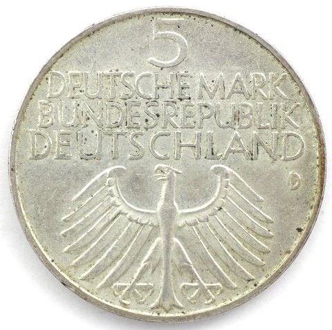 Tyskland, 5 Mark, 1952 D, Nürnberg, sølv