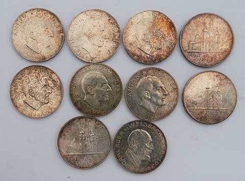Østrig, erindringsmønter 25 Schilling sølv 1957-1962 (10)