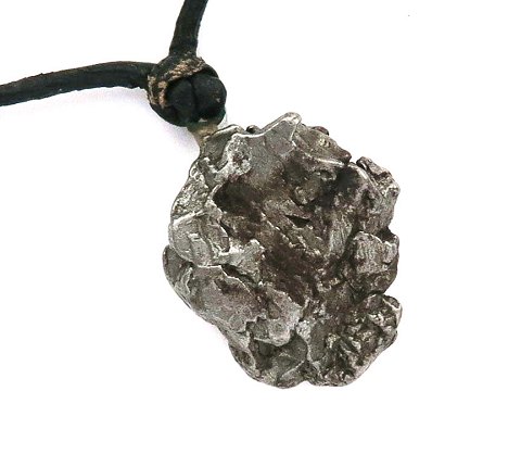 Snøre halskæde med vedhæng i form af jernmeteorit på 24 x 20 mm.