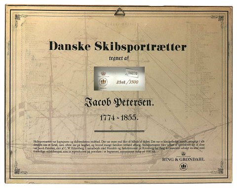 B&G skibsmaleri på porcelænsplatte med motiv af Den Danske Østasiatiske Compagnies skib *Frederick den Sjette 1829*, oprindelig tegnet af Jacob Petersen (1774-1855). Platten er indrammet med beskrivelsen på bagsiden og fremstillet i kun 3500 eksemplarer. Nærværende er nr. 2303/3500. Platten måler 30 x 21 cm.