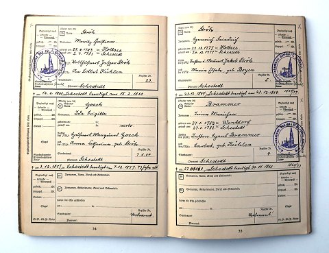 Tysk *Ahnenpass* med stamtavle optegninger fra 1762 til 1914, afskrifter fra Kirchenbuchamt der Evangelisch Reformierten Propstei Schlesvig.