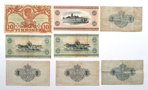 Lot bestående af 1 kr. 2x 1916 C og 2x 1921 2O, 5 kr. 1956 B3 og 1956 B4, 10 kr. 1943 T og 1974 D3.
