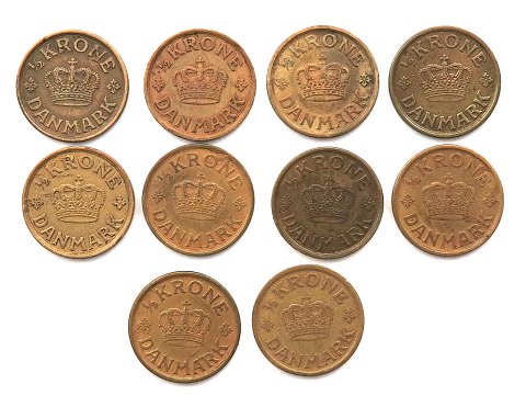 Christian X, ½ kr., 4x 1924, 3x 1925 og 3x 1940 (10)