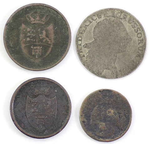 Fredericus Borussorum 12 Schilling sølv og Danske skillingsmønter (4)