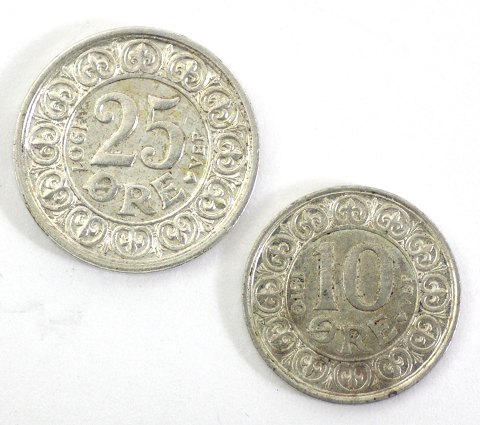 Frederik VIII, 25 øre sølv 1907 og 10 øre sølv 1910 (2)