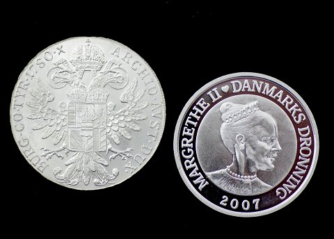 H.C. Andersen, 10 kr. sølv 2005 og Maria Theresia Thaler 1780 nypræg