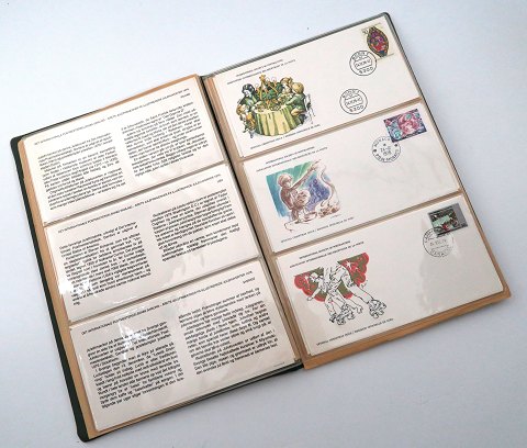 Førstedagskuverter fra hele verden, alle med forskellige julemotiver og frankeret med alverdens julefrimærker, indordnet i album fra Franklin Mint med de sædvanlige, overdådige ægthedscertifikater til fremme for salget.