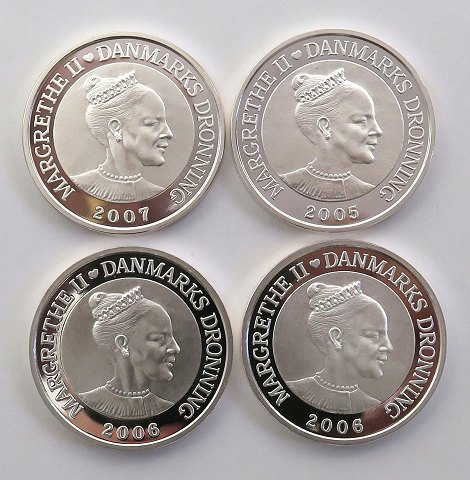Lot bestående af 100 kr. finsølv *Isbjørn* præget 2007 i anledning af det internationale Polarår. 10 kr. finsølv *Den Lille Havfrue*, *Skyggen* samt *Snedronningen* præget 2005 og 2006 i anledningen af 200 året for H.C. Andersens fødsel.