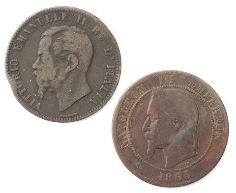 Frankrig og Italien, 10 Centimes og 1865 og 10 Centissimi 1867 (2)
