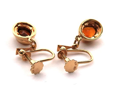 Par øreskruer af 14 kt. guld, hver prydet med facetslaben, oval citrin 6 x 8 mm. L. inkl. skruebøjle 24 mm., samlet vægt ca. 4 gr.