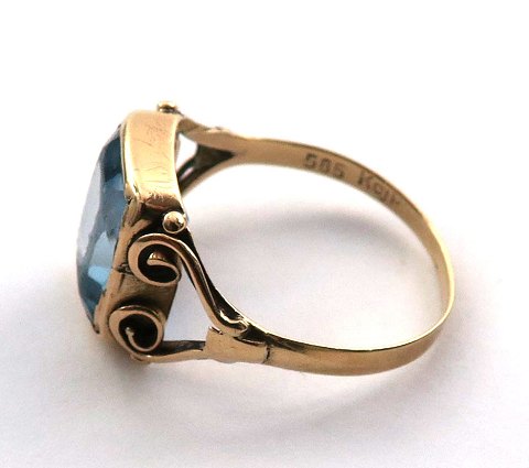 Ring af 14 kt. guld, prydet med azurblå sten 10 x 12 mm. Ring Str. 54, samlet vægt ca. 4 gr.