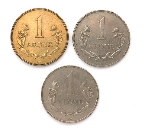Den kongelige Grønlandske Handel, sæt af 1 kroner hhv 1957, 1960 og 1964. Mønterne ligger i plastkapsler i en præsentationsæske, og medfølges af ægthedsbevis samt ordrebekræftelse fra Mønthuset Danmark på ikke mindre end 1500,-