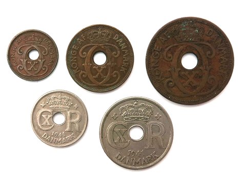 Færø-møntsæt, 1-, 2-, 5-, 10- og 25-ører, 1941, "De hjerteløse mønter" (5)
