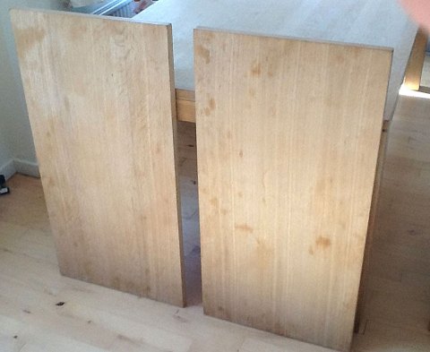 Spisebord af massivt, ludbehandlet egetræ med 2 tillægsplader