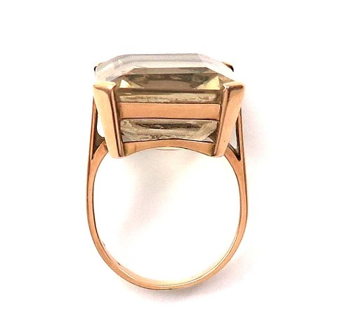 Ring af 14 kt. guld, prydet med facetsleben, stor citrin 20 x 22 mm. Ring str. 61, samlet vægt ca. 14 gr.
