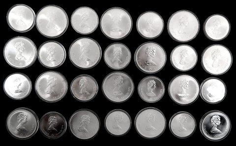 Canada, møntsæt 5 $ og 10 $ sølv - alle af sterlingsølv - 1020,6 gr ialt - næsten 1 kg finsølv.