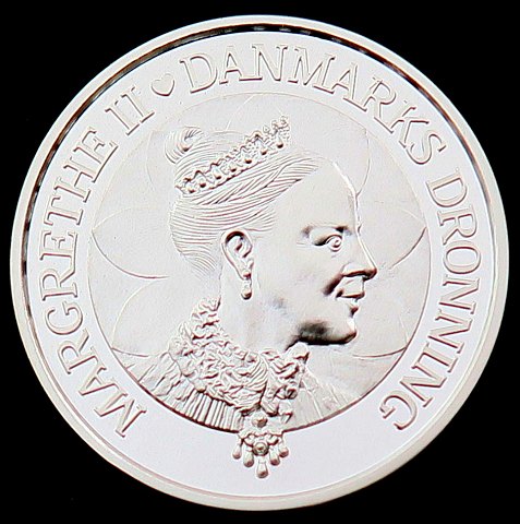Lot med førstedagskuvert stemplet 12.04.2000 og nummereret 0119 med indsat 20 kr. mønt og annulleret med 4 kr. mærke. Desforuden 200 kr. sølv, udgivet i 2000.