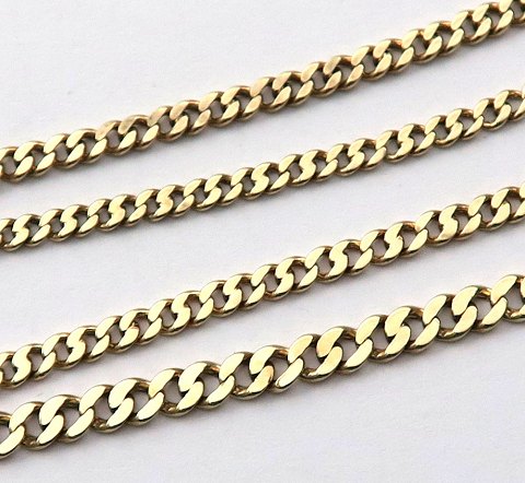 Halskæde af 14 kt. guld med panseled i forløb, vedhæng med 7 mm. perle