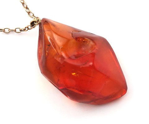 Anker halskæde af 14 kt. med stor vedhæng af transparent, poleret rav. Halskæde L. 73 cm., vægt ca. 6,7 gr., ravvedhæng 50 x 35 mm., vægt 19,5 gr.
