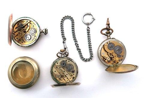 Lot lommeure af sølv, urkæde og kapsel (3)