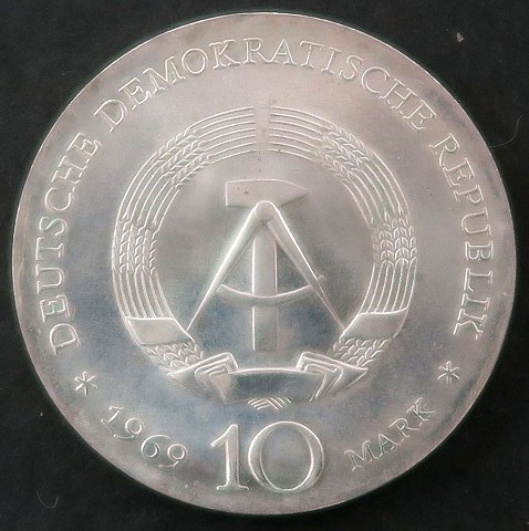 DDR, 10 Mark erindringsmønt sølv 1969 - KM# 24.